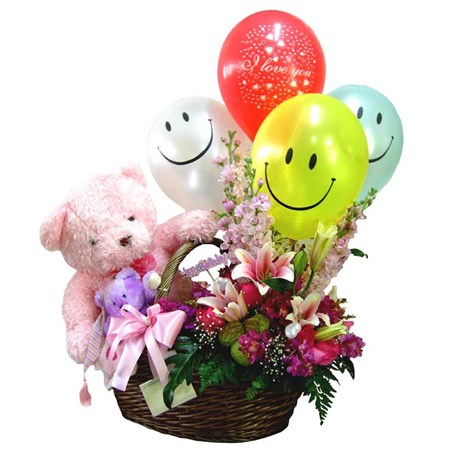 • Gourmet Basket with Flowers